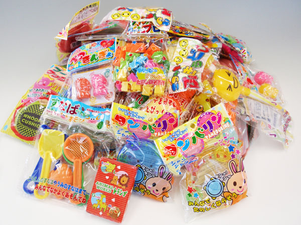 お子様ランチ用のおもちゃ、お祭りやイベントなどの屋台で販売するおもちゃなどを中心に、保育園や幼稚園などのバザーに最適なグッズや玩具、お店の開店記念や改装記念などにぴったりな、ちょっとしたノベルティグッズも販売しております。