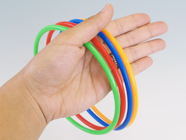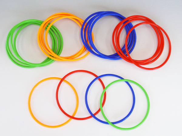 輪投げに最適な輪です。直径13cmと大きめなので小さいお子様にもちょうどいいサイズです♪赤・青・黄・緑の4色あります。