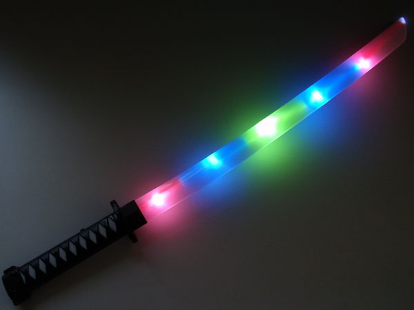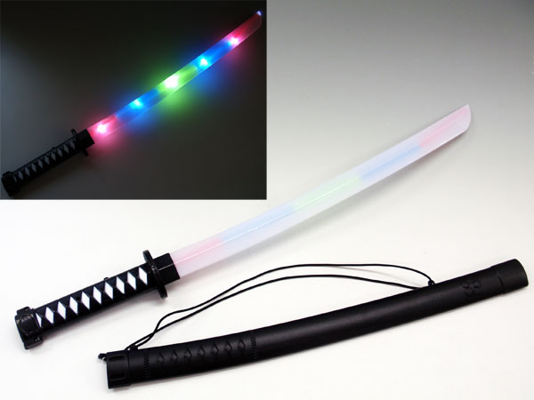 光って音が鳴る日本刀!サヤ付、肩掛けヒモ付、本格的!!