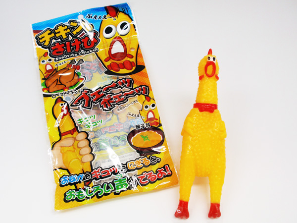 ギュッとにぎるとおもしろい音でチキンがさけびます(笑)
